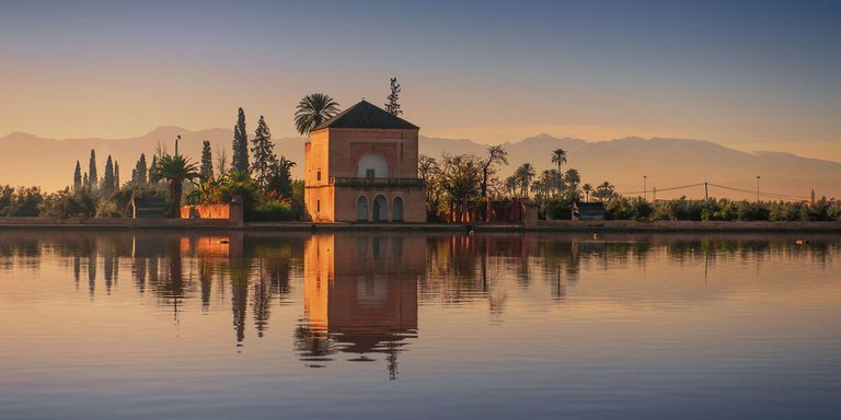 Llegada , y traslado al hotel. Visita de la ciudad comenzando por los jardines de la Menara con su estanque, las tumbas Saadianas donde se encuentran los fundadores de la ciudad, el Palacio de la Bahía, residencia del antiguo visir; la Koutobia, espléndido minarete, para terminar en la inenarrable Plaza de Jamaa el F’ naa, en la mañana un grandioso zoco, y en la noche un mágico espectáculo. Cena y alojamiento.