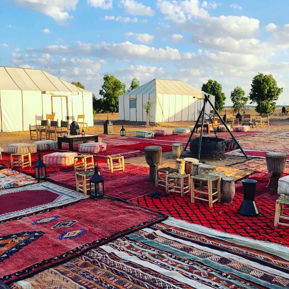 Després d´esmorzar ens dirigirem cap al desert passant pel bosc de cedres, el port de MIDELT, l´embassament d´ERRACHIDIA, el magnífic panorama de la vall del ZIZ, la ciutat d´ERFOUD (la porta del desert). Assistirem a la posta de sol al cim del BORJ d'EST que ofereix un meravellós paisatge sobre la ciutat ERFOUD. Després seguirem per la pista de nit per assolir les Dunes de l'ERG CHEBBI. Nit a Hotel Kasbah, Riad oa les haimes (sopar i esmorzar).