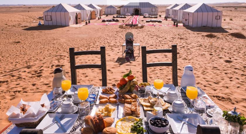 Después del desayuno en el hotel, comenzará su viaje exploratorio por el desierto de la zona, visitando el pueblo de Khamlia, originalmente esclavos de Sudán para experimentar su música y estilo de vida. No muy lejos está el lago de Merzouga, con sus poblaciones de aves, incluidos los flamencos. También puede visitar la casa de alambre nómada donde muchas artesanías bereberes tienen un precio más bajo que en las grandes ciudades. En la tarde montarás tu camello, guiado por un experimentado Camelman, para explorar dentro del misterioso mar de arena del Erg-Chebbi. Aquí pasarás tu primera noche bajo las estrellas, o si lo prefieres, en una tradicional tienda nómada bereber. La cena se servirá en la tienda donde pasará la noche. Cena cama y desayuno.