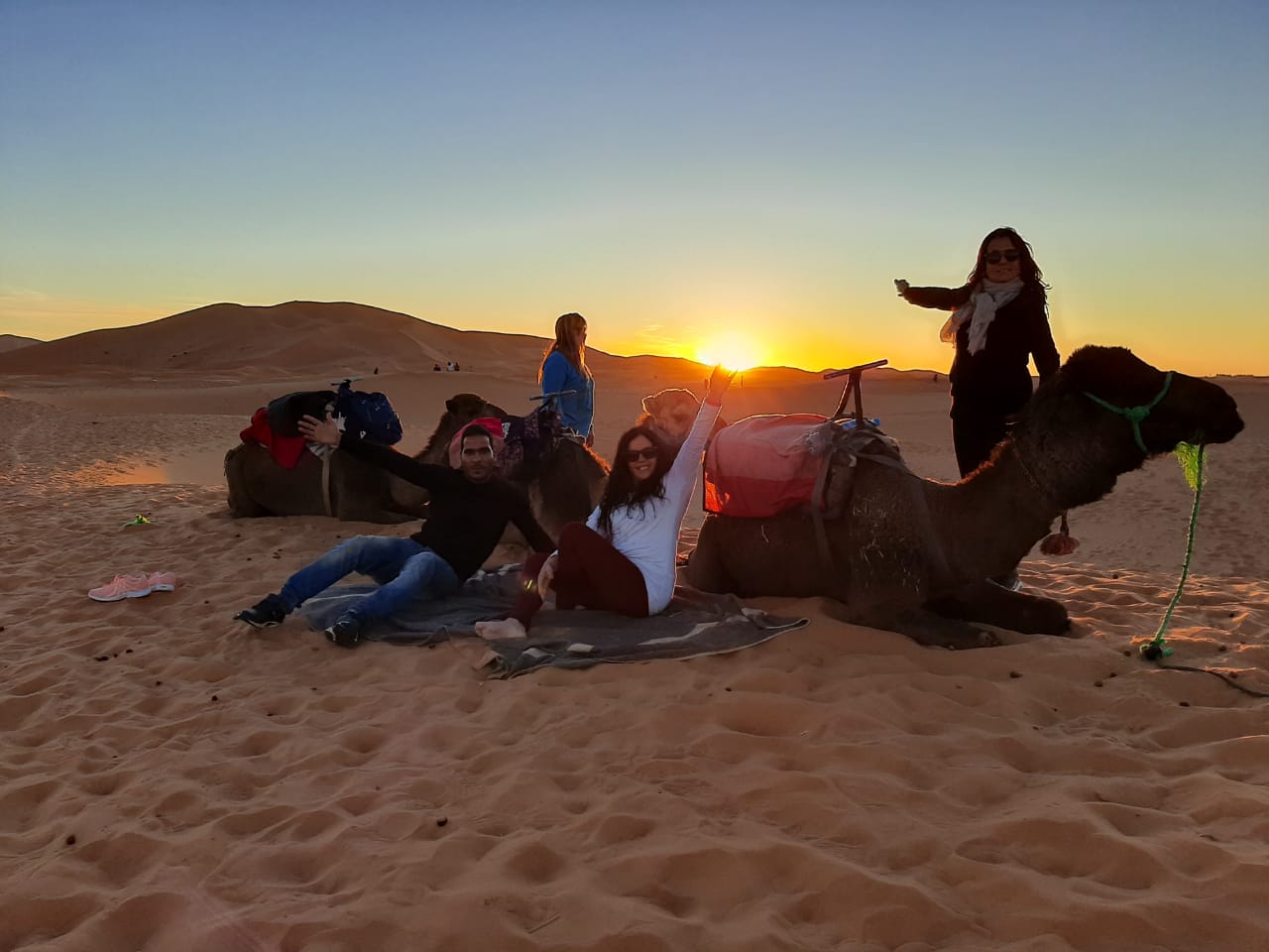 Después del desayuno nos dirigiremos hacia el desierto pasando por el bosque de cedros, el puerto de MIDELT, el embalse de ERRACHIDIA, el magnífico panorama del valle del ZIZ, la ciudad de ERFOUD (la puerta del desierto). Asistiremos a la puesta del sol en la cima del BORJ d’EST que ofrece un maravilloso paisaje sobre la ciudad ERFOUD. Luego seguiremos por la pista de noche para alcanzar las Dunas del ERG CHEBBI. Noche en Hotel Kasbah, Riad o en la haimas (cena y desayuno).