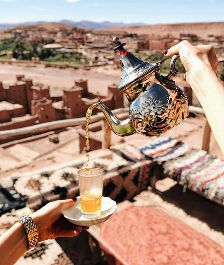por la mañana por pista hacia el valle de las rosas y el magnífico pueblo bereber de Boutghrart donde tomamos un té con una familia. Seguimos la pista por la ruta de mille casbahs , esta etapa , esta fuera de lo habitual . Efectuamos varias paradas en sitios interesantes: , casbahs , vistas panorámicas , valles , nómadas en cuevas …. Llegada al pueblo de Skoura donde dejamos la pista y de nuevo carretera hacia la casbah Ait benhaddou donde rodaron varias películas internacional como Oblix, Gladiator,Sahara