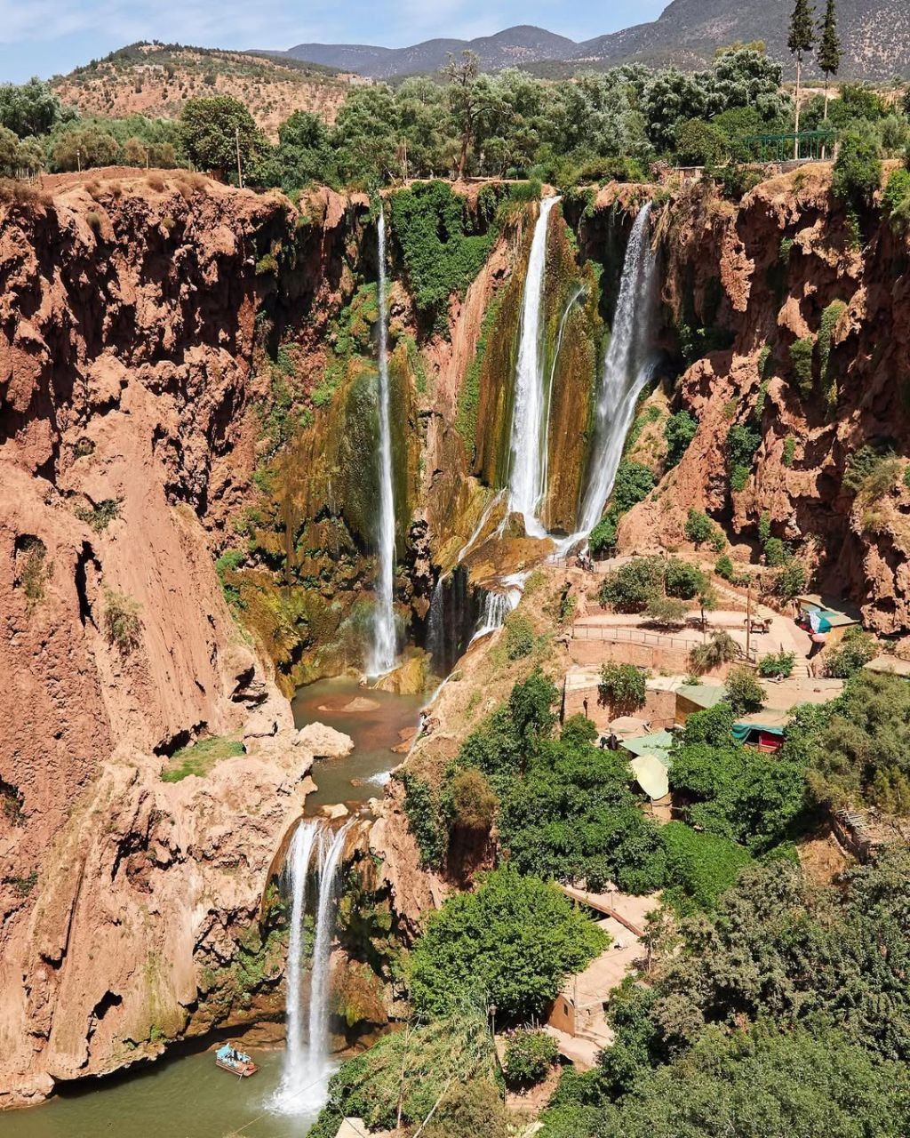 Situadas en el corazón del Medio Atlas, a unos 150 km al noreste de Marrakech, las Cascadas de Ouzoud son el salto de agua más alto del norte de África, con una caída de más de 110 metros. Su nombre, que significa "aceituna" en la lengua bereber, hace alusión a los innumerables olivos que abundan en la zona y que añaden un toque de verdor único al paisaje.